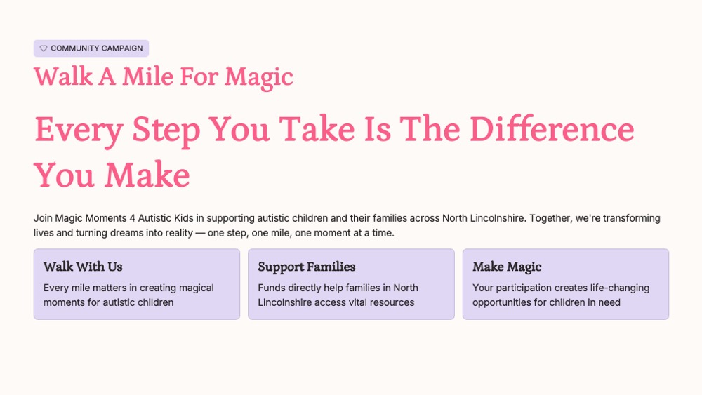 Step forward this April and make a meaningful impact – wherever you are. Choose your own mile route, pick a date and a time that works for you, and walk in solidarity during World Autism Acceptance Month. When you raise £50, you’ll receive a personalised thank-you card and pin badge to celebrate your achievement. As your fundraising grows, so do the rewards you can earn. Every mile, every moment, and every contribution helps build a society that truly values and empowers autistic people.